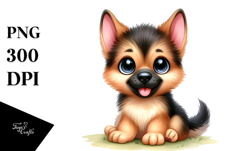 Watercolor Baby Cartoon German Shepherd PNG example image 1