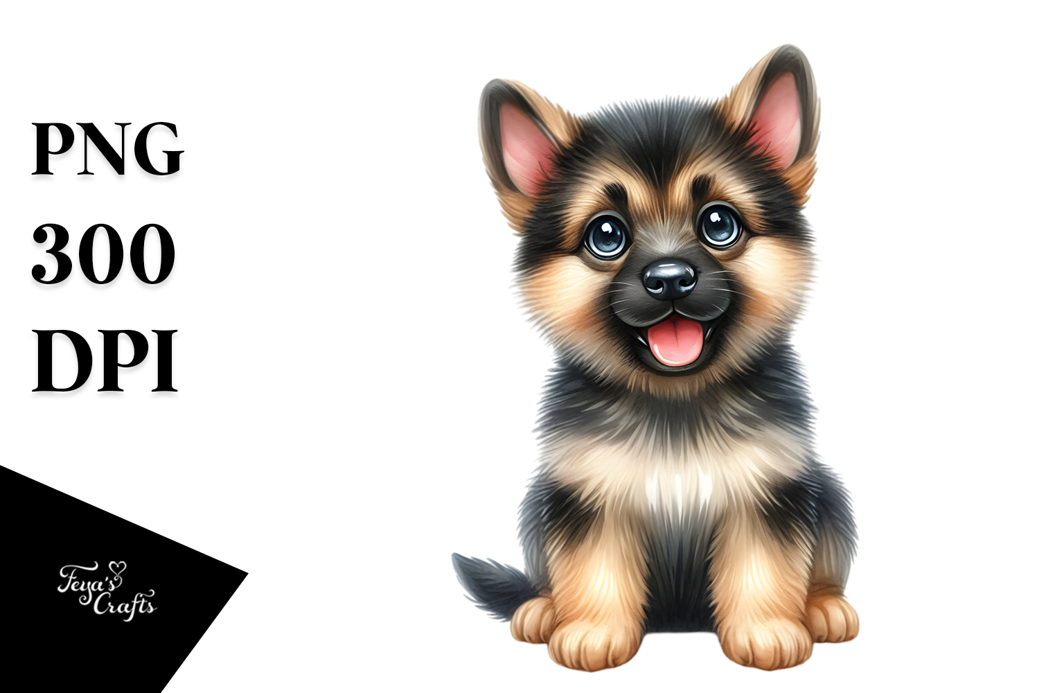 Watercolor Baby Cartoon German Shepherd PNG example image 1