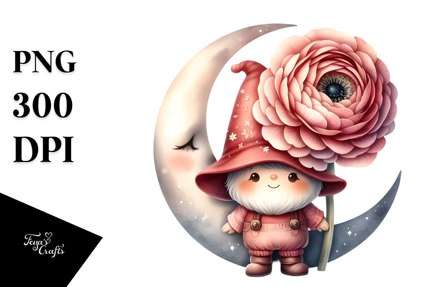Similar Design Products to Watercolor Cute GNOME with Big Hat and Ranunculus PNG