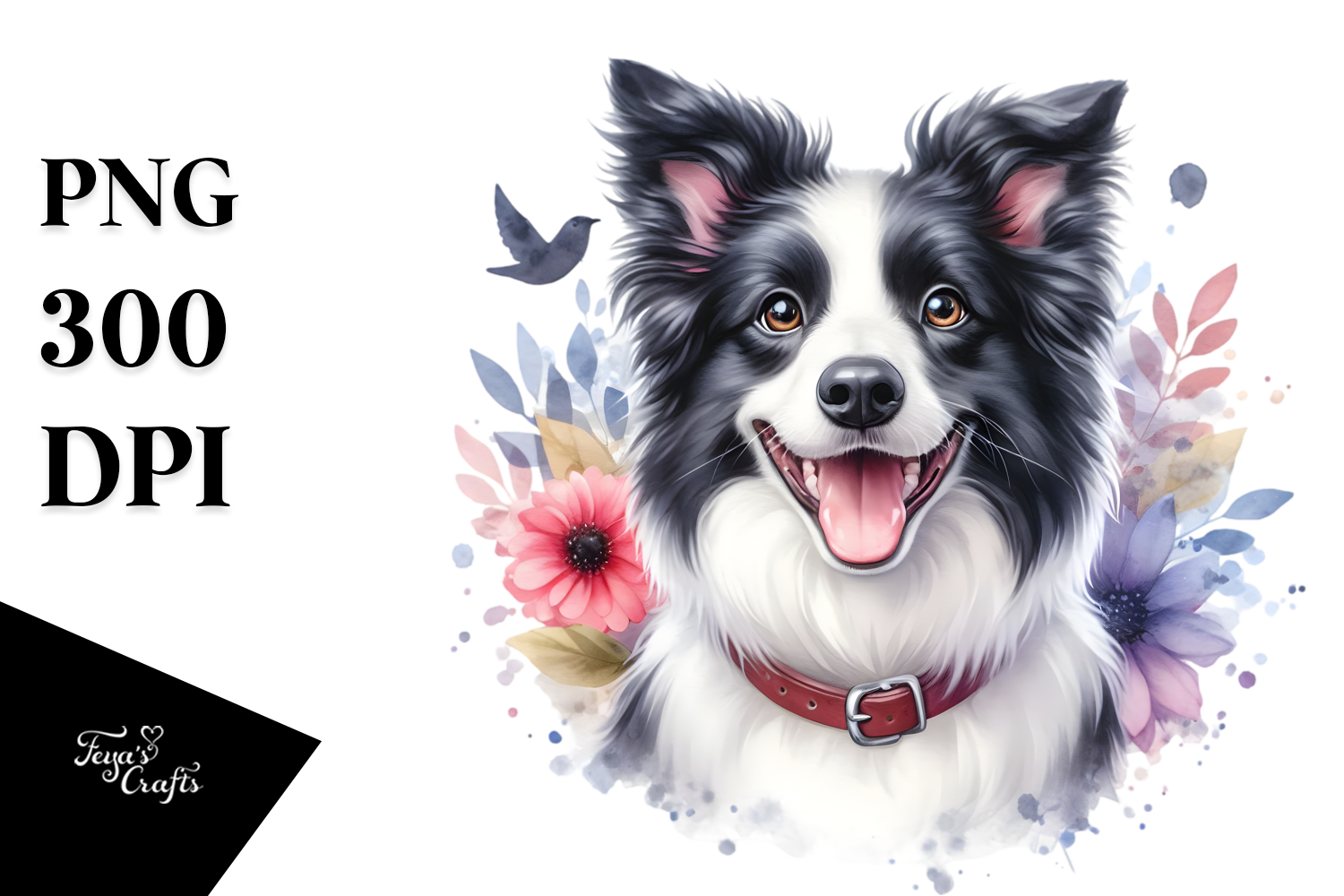 Similar Design Products to Watercolor Baby Border Collie with Big Eyes PNG