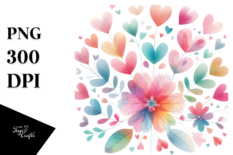Simple Flower with Hearts Watercolor PNG example image 1