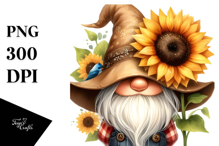 Cute GNOME with Sunflower PNG example image 1