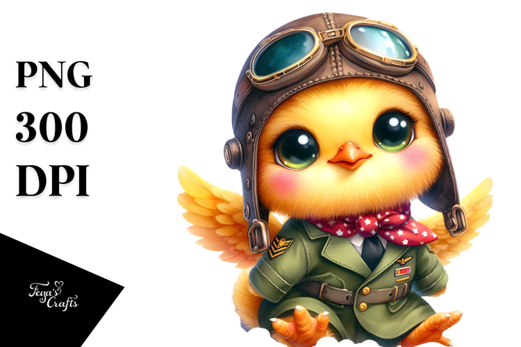 Vibrant Cute Baby Chick in Aviator Suit PNG example image 1