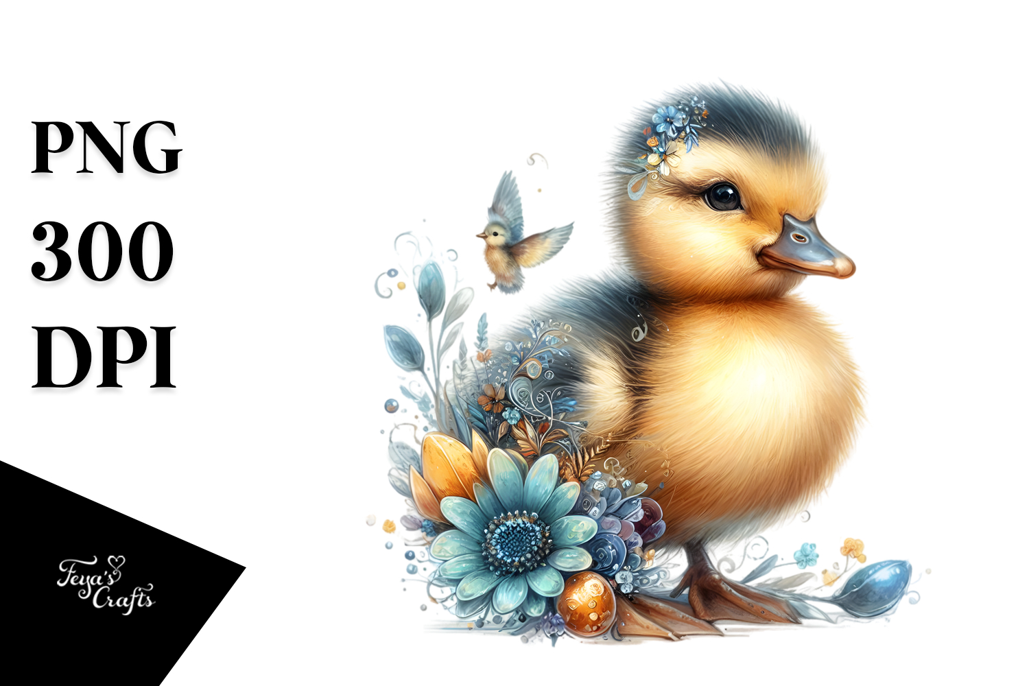 Adorned Baby Duck Watercolor PNG example image 1