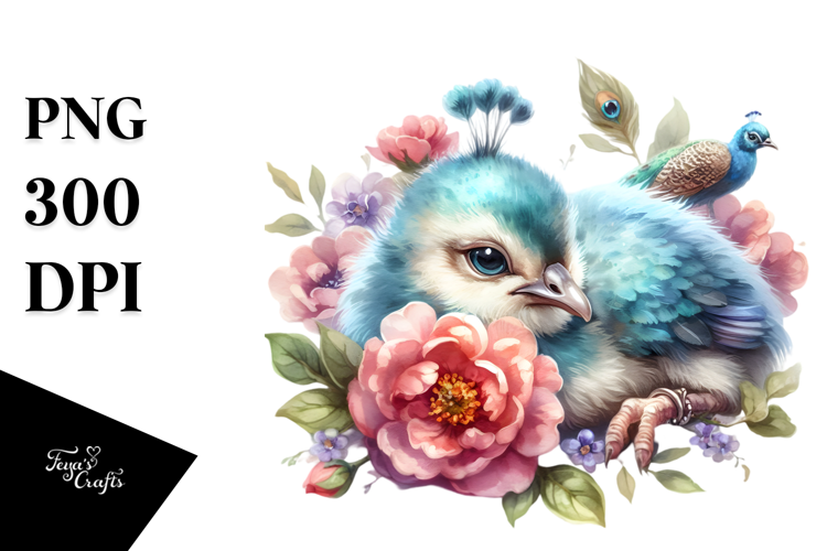 Watercolor Flower Digital Sleeping Whitebackground Bigeyes Babypeacock Smallbody