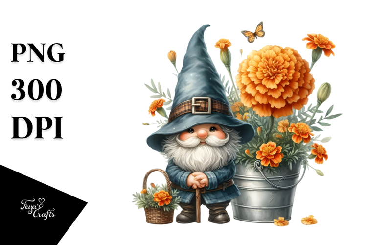 Watercolor Cute Adorable Gnome Whitebackground Marigold Floralornament Bigeyes Bighat