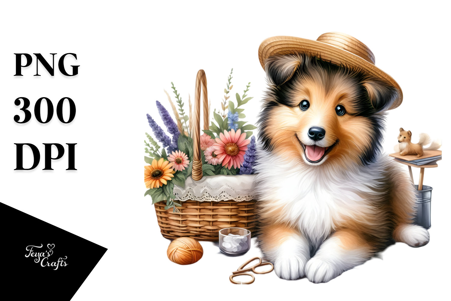Watercolor Baby Collie with Big Eyes PNG example image 1