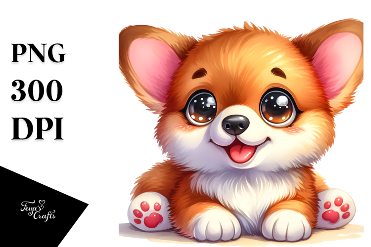 Cute Cartoon Pembroke Welsh Corgi with Big Eyes PNG example image 1