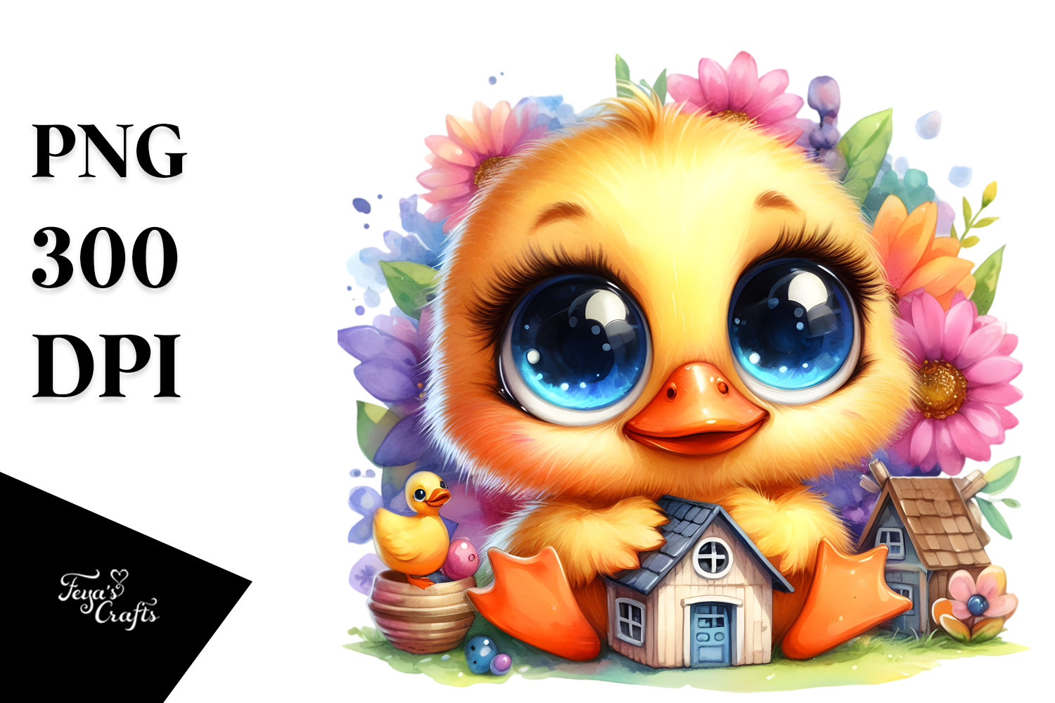 Watercolor Cute Baby Crazy Vibrant Duck Eyes Bigeyes Tinyhose