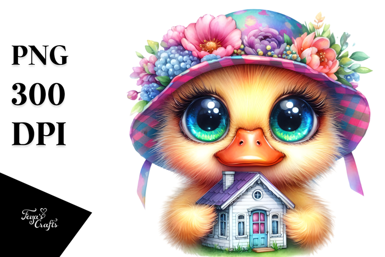 Vibrant Crazy Eyes Happy Baby Duck with Tiny Hose PNG example image 1