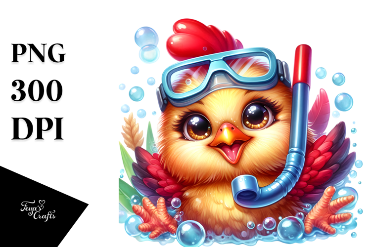 Cute Baby Eyes Rooster Smiling Snorkel Whitebackground Bubblebath