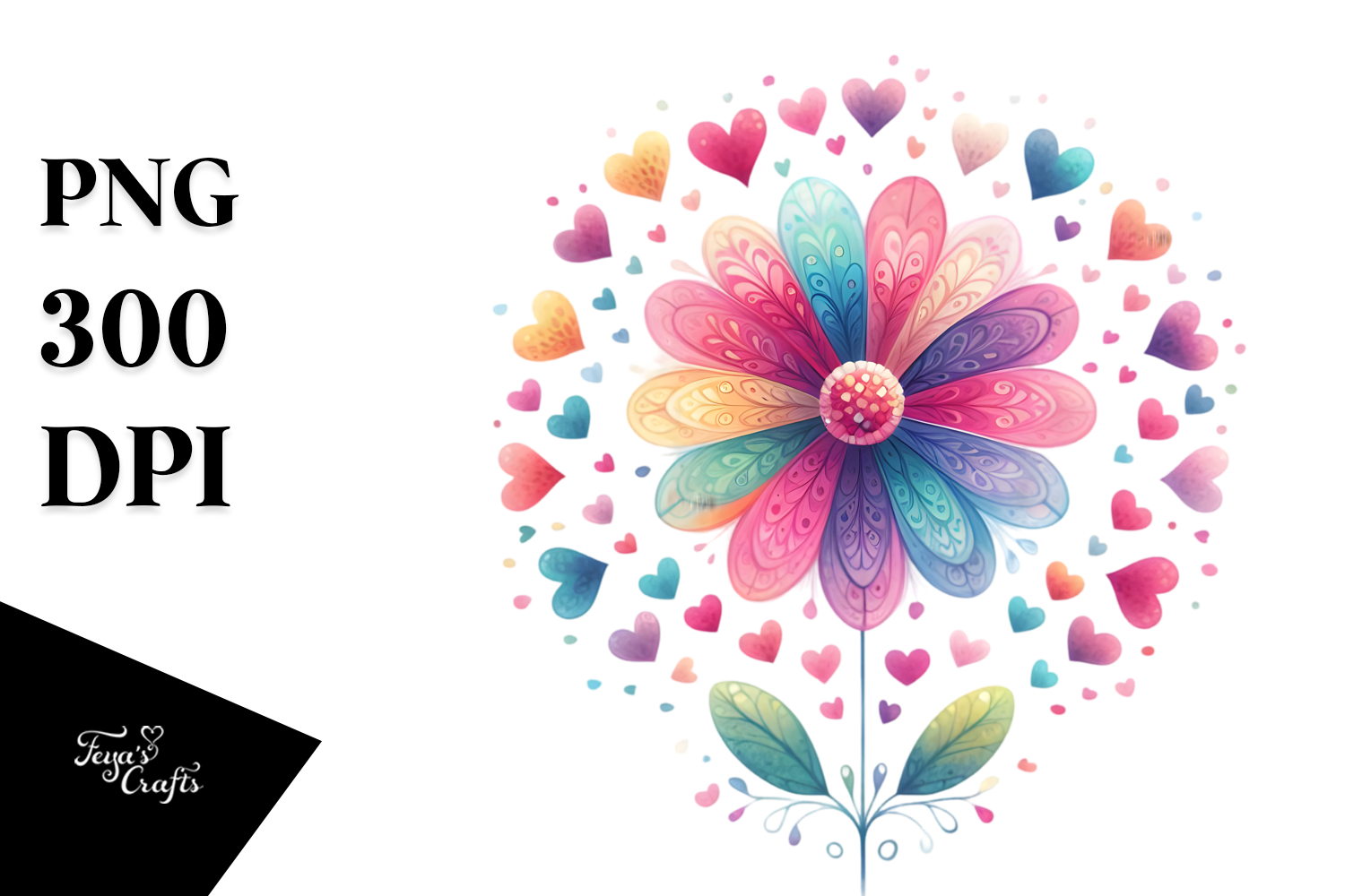 Watercolor Sticker Summer Flower Boho Png Sublimation Digitalpainting Heartpetals