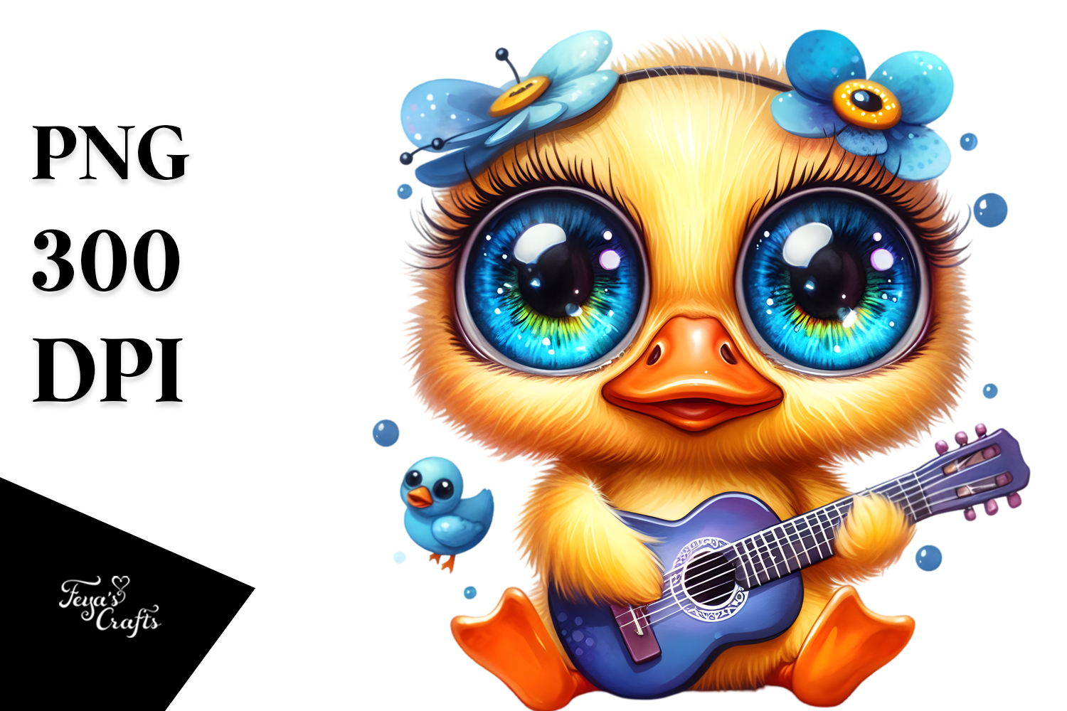 Sticker Summer Cute Flower Png Sublimation Goofy Babyduck Holdingtinyguitar