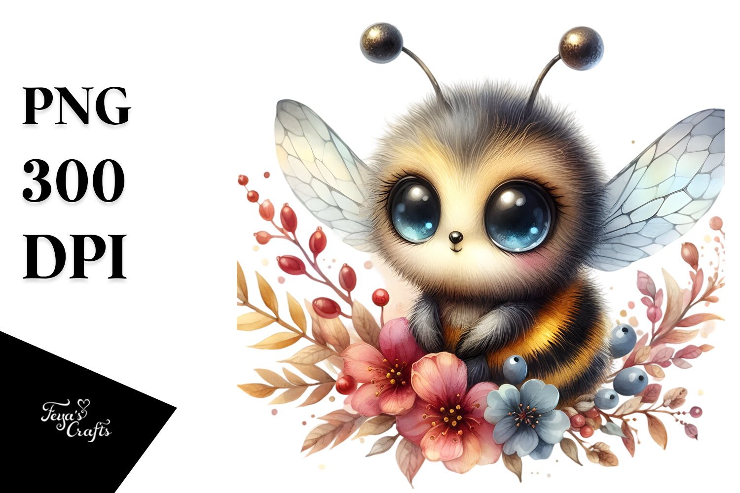 Adorable Baby Bee with Big Eyes, SEO PNG example image 1