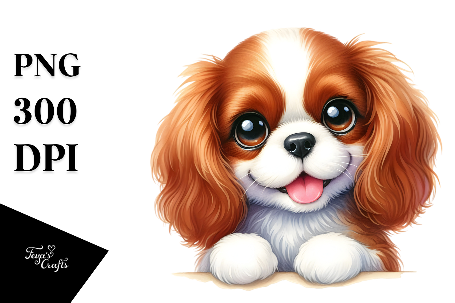 Happy Cavalier King Charles Spaniel PNG example image 1