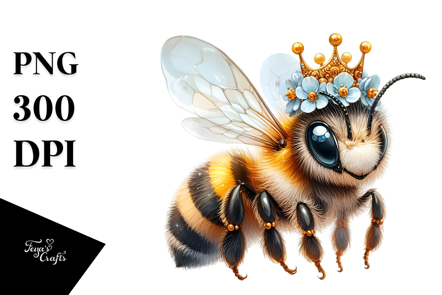 Digital Adorned Happy Cute Baby Bee PNG example image 1