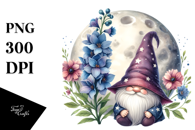 Similar Design Products to Gnome with Moon Delphinium PNG