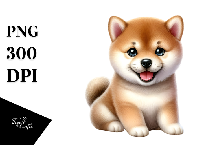 Watercolor Cute Painting Happy Puppy Dog Adorable Shibainu Bigeyes