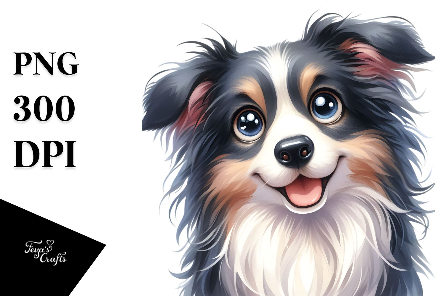 Watercolor Cute Painting Happy Puppy Dog Adorable Bigeyes Bordercollie