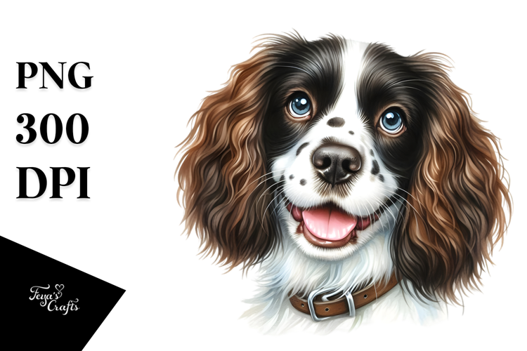 Watercolor Cute Painting Happy Puppy Dog Adorable Bigeyes Englishspringerspaniel