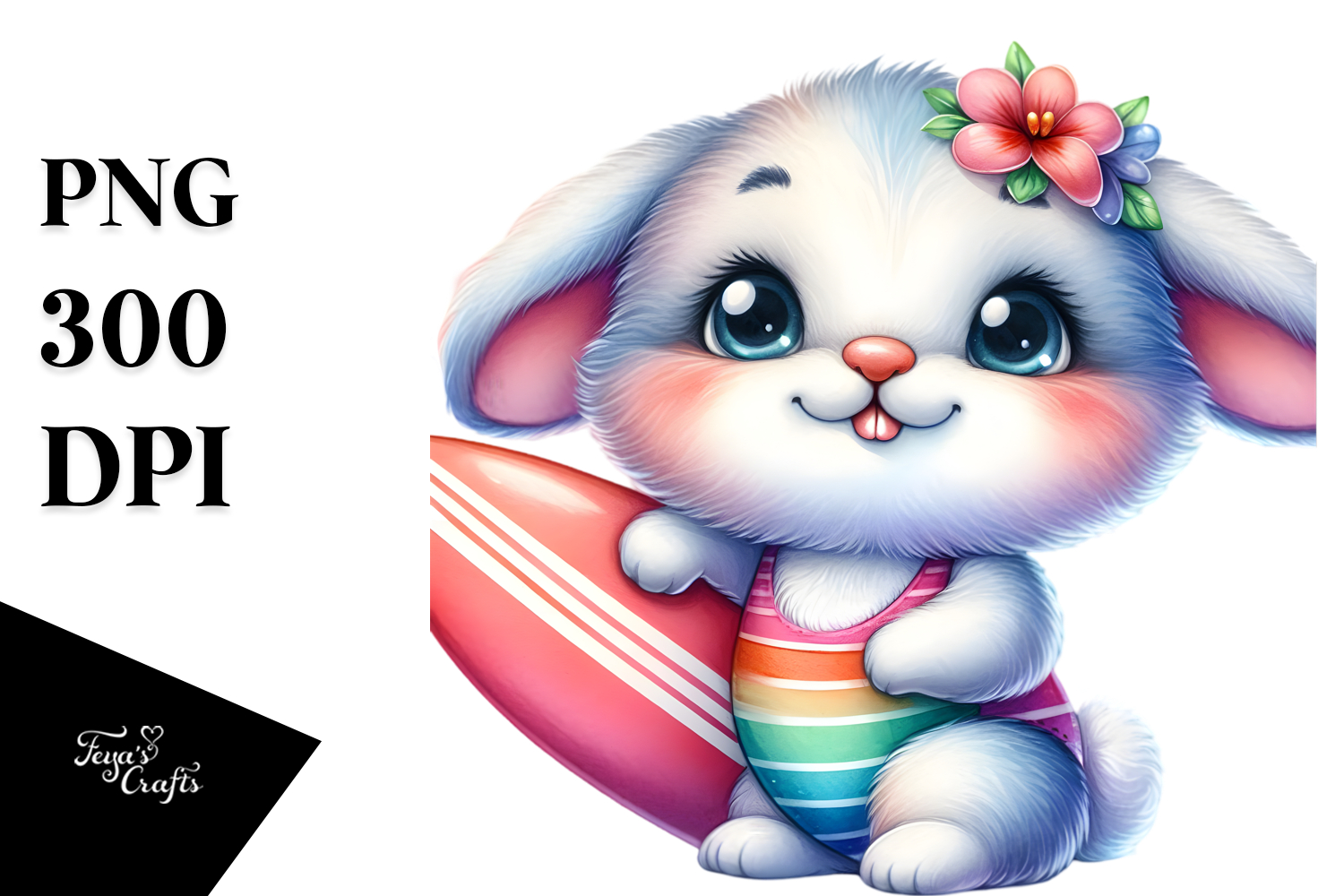 Sticker Summer Baby Flower Png Bunny Surfboard Sublimation Bigeyes