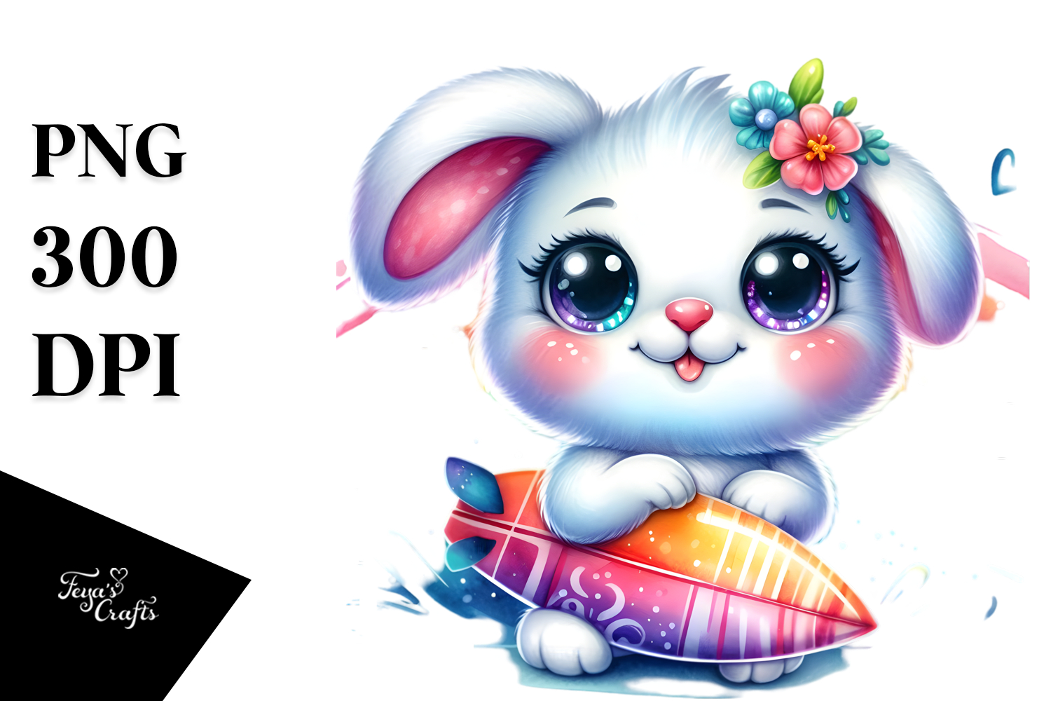 Watercolor Cute Baby Png Bunny Surfboard Sublimation Whitebackground Bigeyes