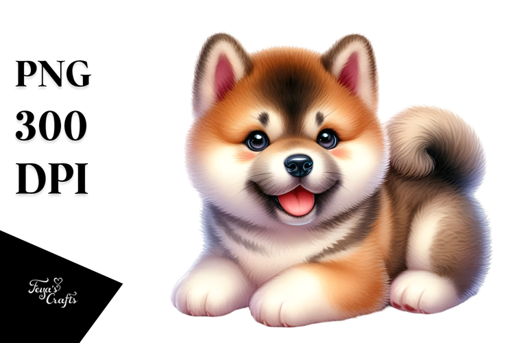 Watercolor Cute Baby Happy Png Sublimation Akita Whitebackground Bigeyes
