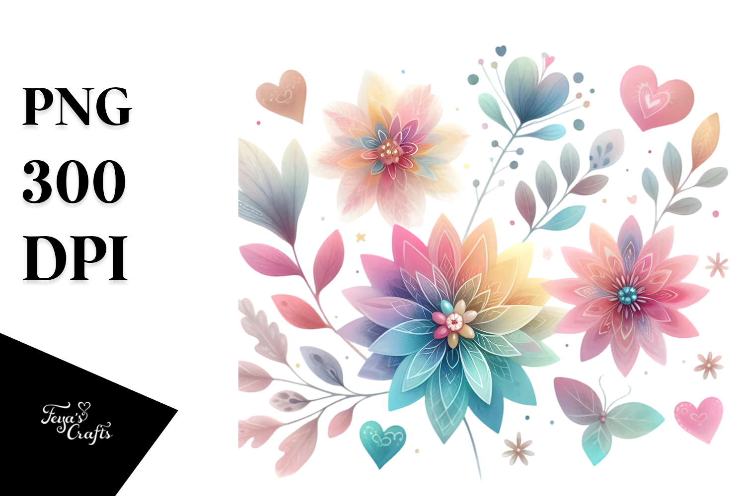 Watercolor Simple Cute Painting Flower Heart Digital Boho Petals