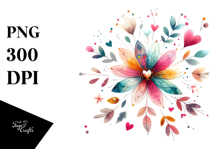 Similar Design Products to Colorful Watercolor Painting with Boho Flower PNG