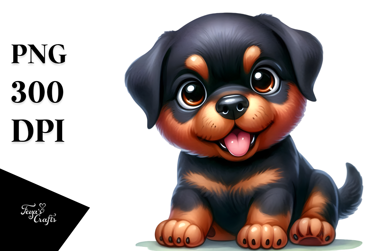 Cartoon Watercolor Baby Happy Png Sublimation Rottweiler Whitebackground Bigeyes