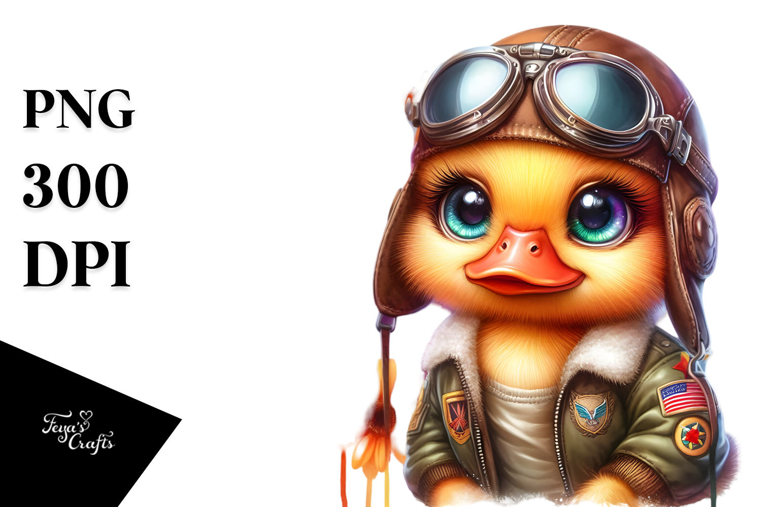 Vibrant Baby Duck with Aviator Suit PNG example image 1