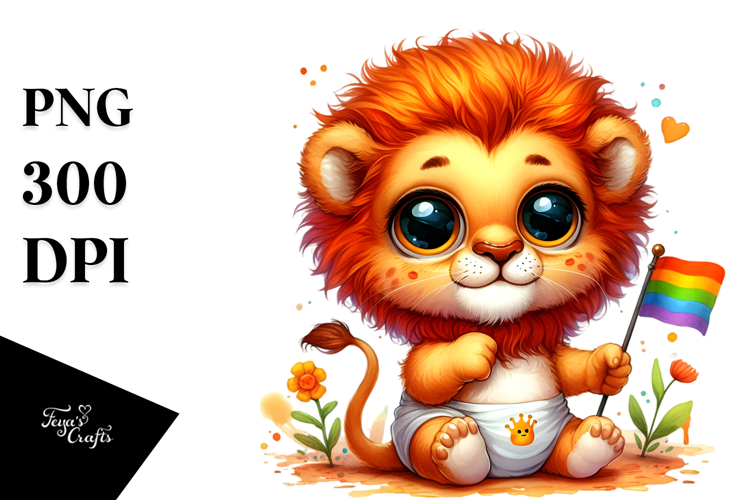 Similar Design Products to Vibrant Watercolor Goofy Cute Baby Lion, PNG