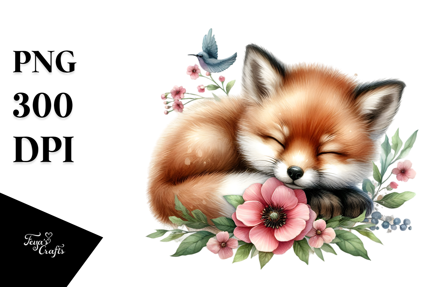 Similar Design Products to Digital Watercolor Cute Baby Fox Sleeping on a Flower, PNG
