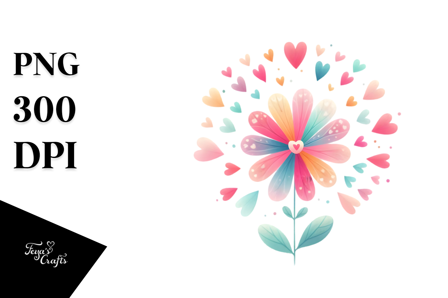 Colorful Pastel Watercolor Cute Flower with Heart Petals, example image 1