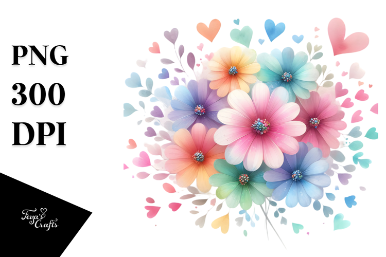 Colorful Digital Flower with Heart Petals, Transparent PNG example image 1
