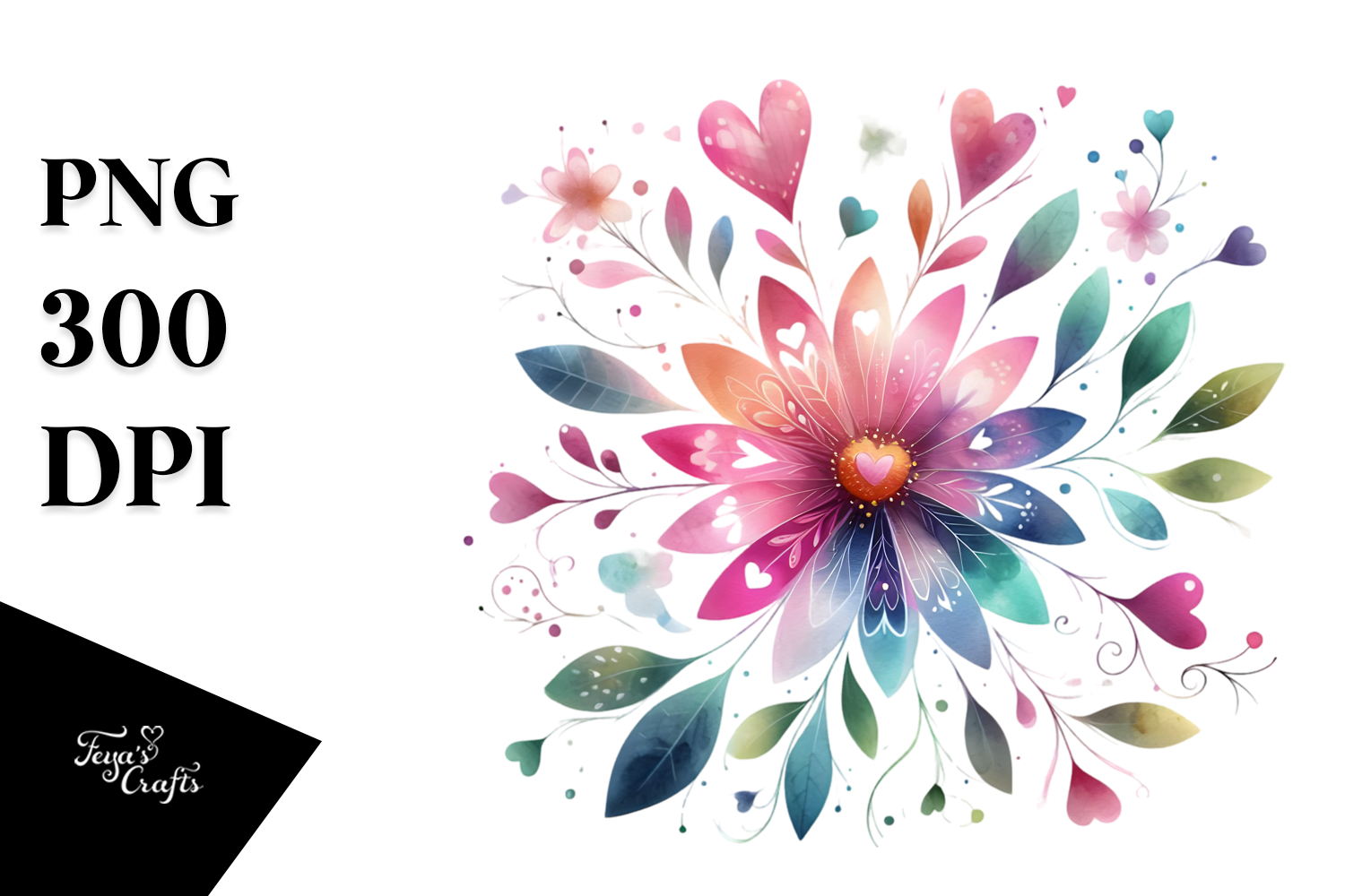 Colorful Simple Flower with Heart Petals PNG example image 1