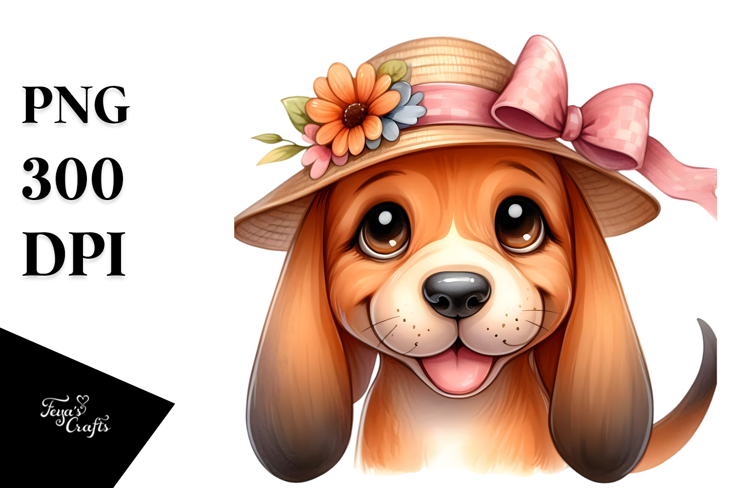 Cartoon Sticker Summer Happy Flower Png Sublimation Bloodhound Bigeyes