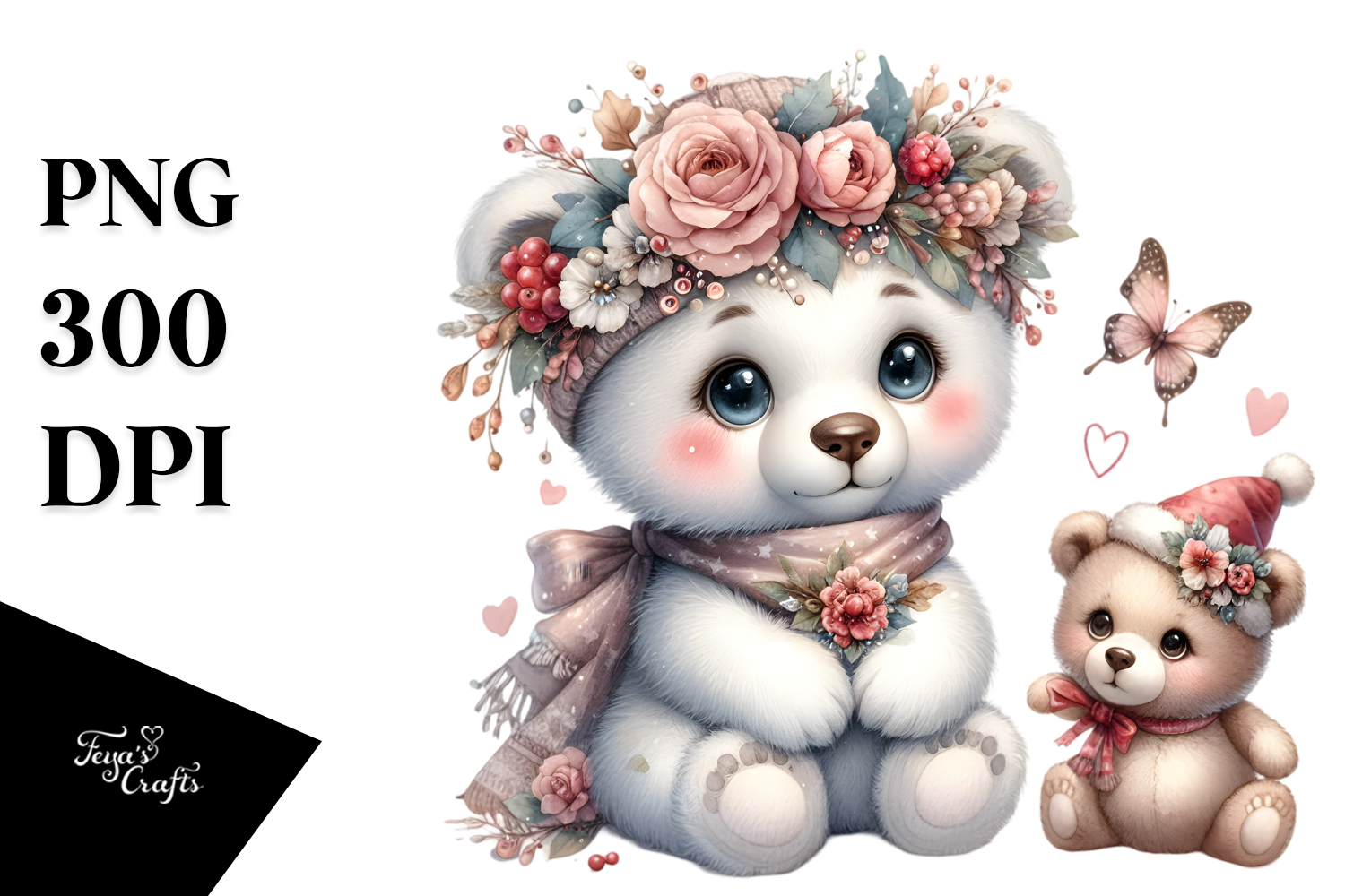 Similar Design Products to Digital Watercolor with Adorned Baby Bear PNG