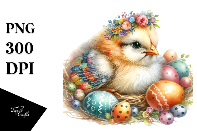 Adorned Baby Chicken Watercolor JPEG example image 1
