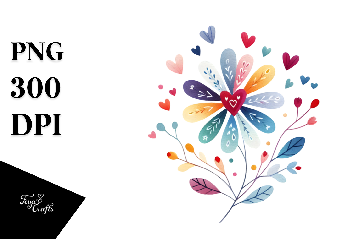 Watercolor Cute Painting Flower Heart Digital Boho Pastel