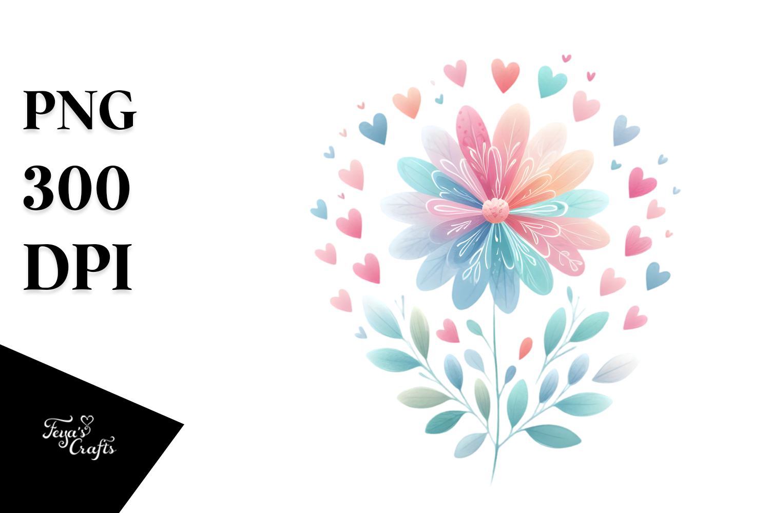 Simple Flower with Heart Petals, Pastel Watercolor example image 1