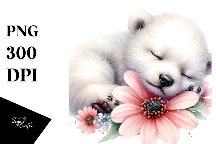 Watercolor Baby Flower Digital Sleeping Polarbear Bigeyes Smallbody