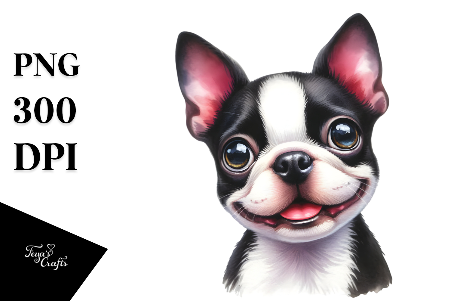 Happy Cute Boston Terrier Dog, Watercolor Art