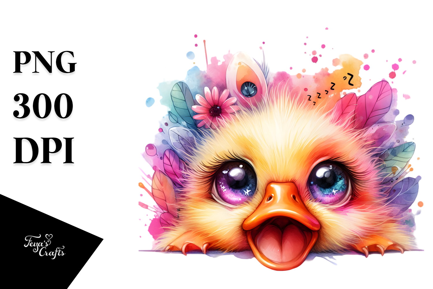 Watercolor Cute Vibrant Duckling Whitebackground Snoring Bigeyes Babyduck Crazyeyes