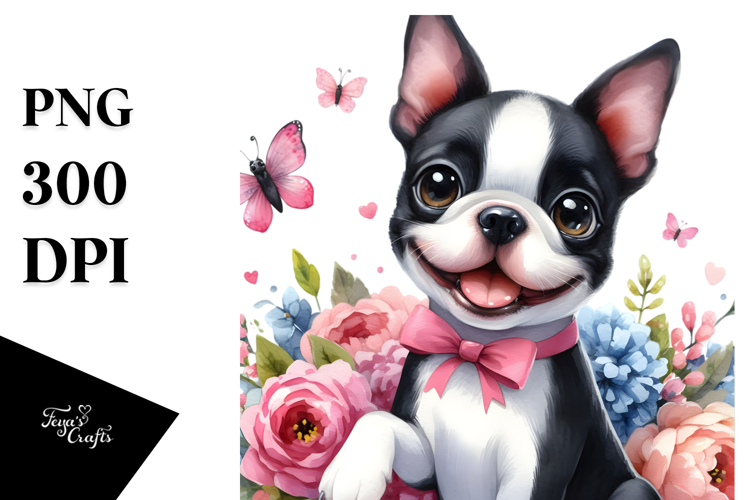 Happy Cute Boston Terrier PNG example image 1