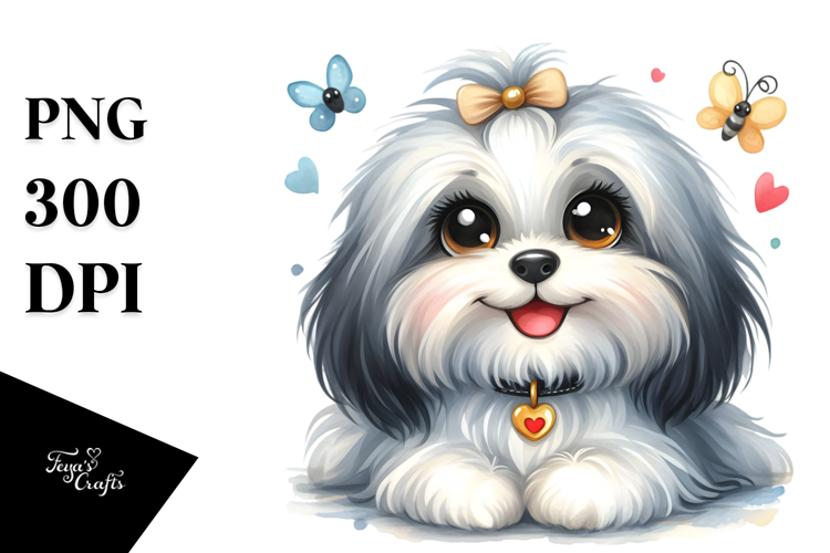 Watercolor Cute Cartoon Havanese PNG example image 1