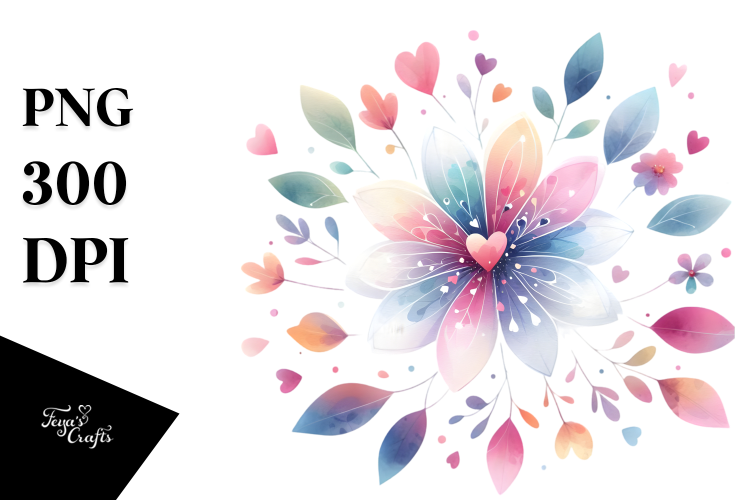 Watercolor Simple Cute Hearts Flower Boho Pastel