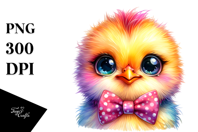 Vibrant Baby Chicken with Tiny Bowtie PNG example image 1