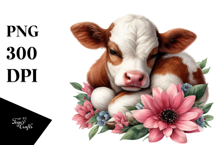 Similar Design Products to Digital Baby Cow Sleeping on Flower, Transparent PNG