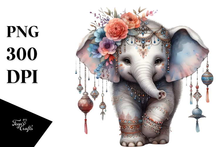 Adorable Baby Elephant in Digital Watercolor, PNG example image 1